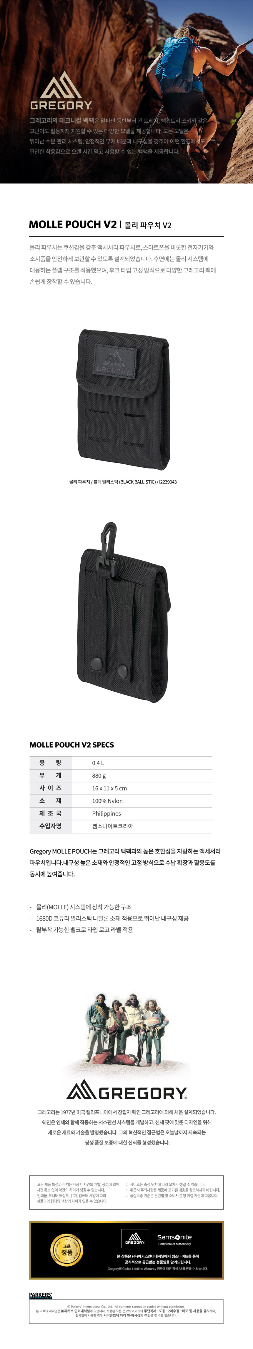 - home > 여행/스포츠/수상레저 > 파우치/지갑/가방 > 파우치 > [그레고리]몰리 파우치 V2 액세서리 스마트폰 보조배터리 보관용
